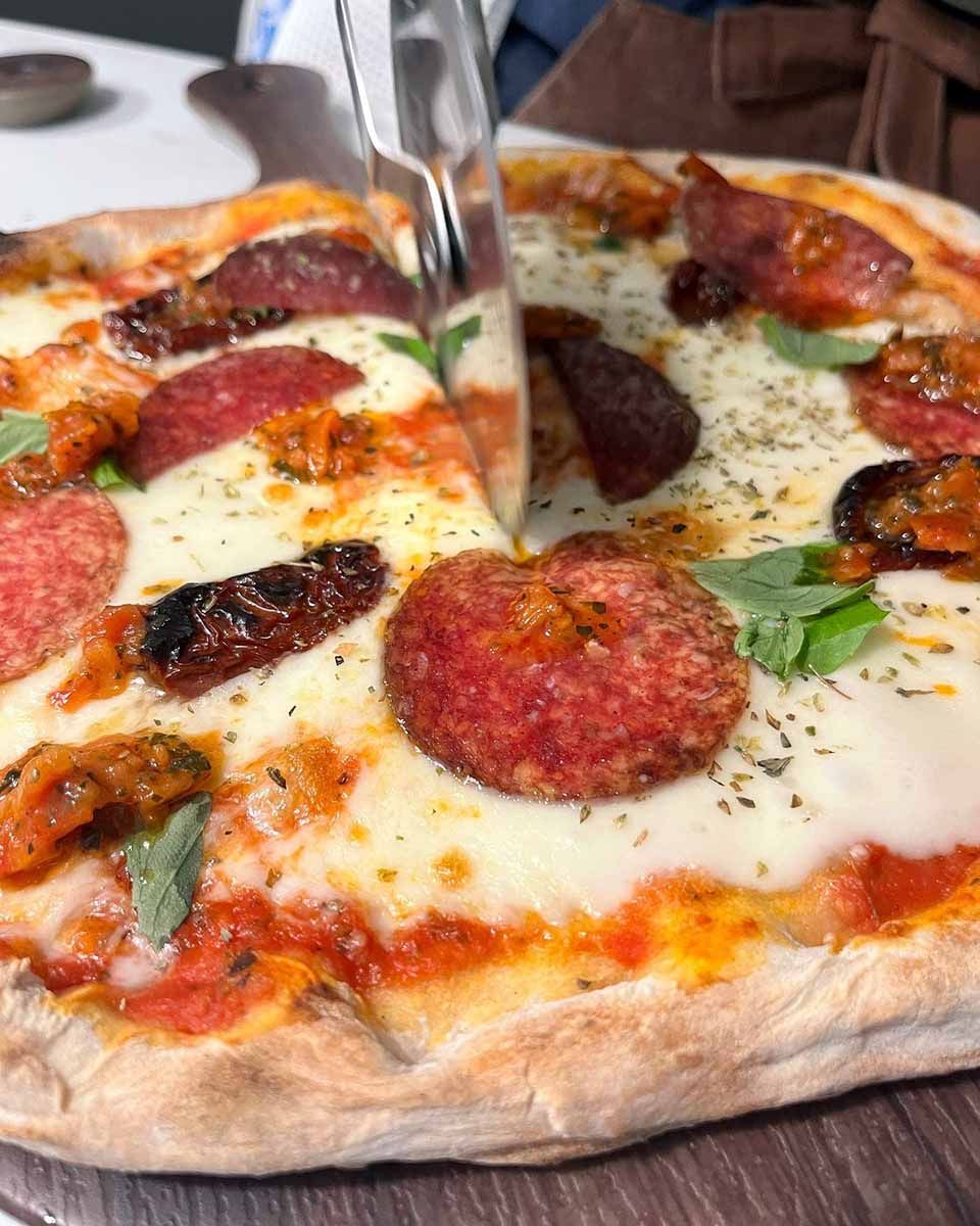 Vi är stolta över att erbjuda en smakupplevelse utöver det vanliga. Hos oss kan du njuta av våra berömda (nåja, alla pratar om dom 😃) napolitanska pizzor, som tillagas med kärlek och noggrant utvalda råvaror. Men vi är mer än bara en pizzeria. Vi är också ett mysigt café där du kan koppla av och njuta av något gott. Vi strävar efter att skapa en genuin och välkomnande atmosfär där du kan känna dig som hemma.
